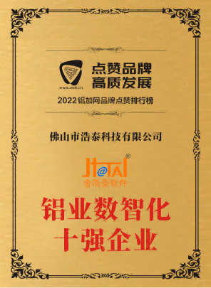 浩泰科技入選2022年南海區制造業數字化轉型服務商資源池。 浩泰科技獲得2022年鋁加工供應鏈專精特新優秀企業。 浩泰科技在2022鋁加網品牌點贊排行榜中榮獲鋁業數智化十強企業。