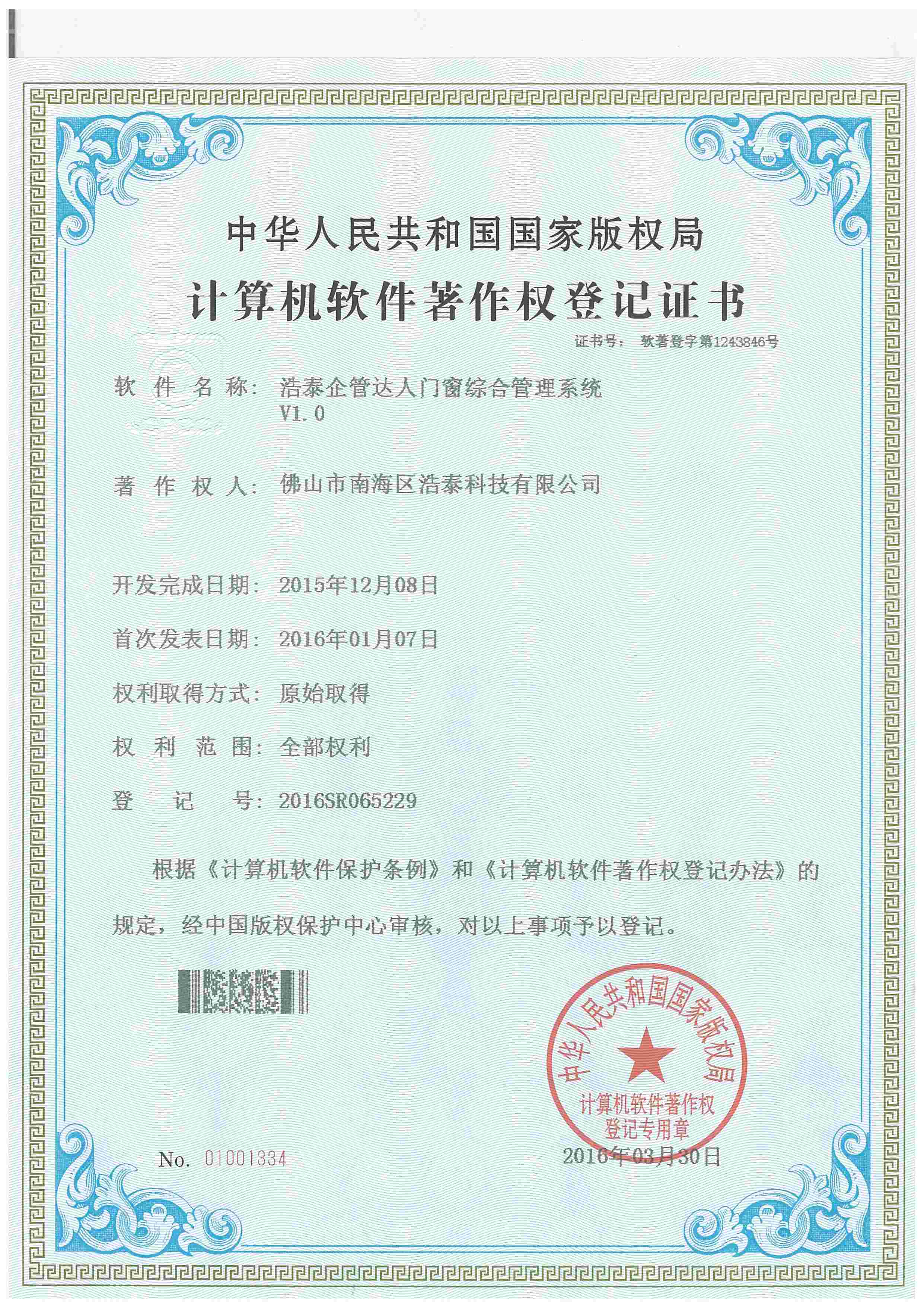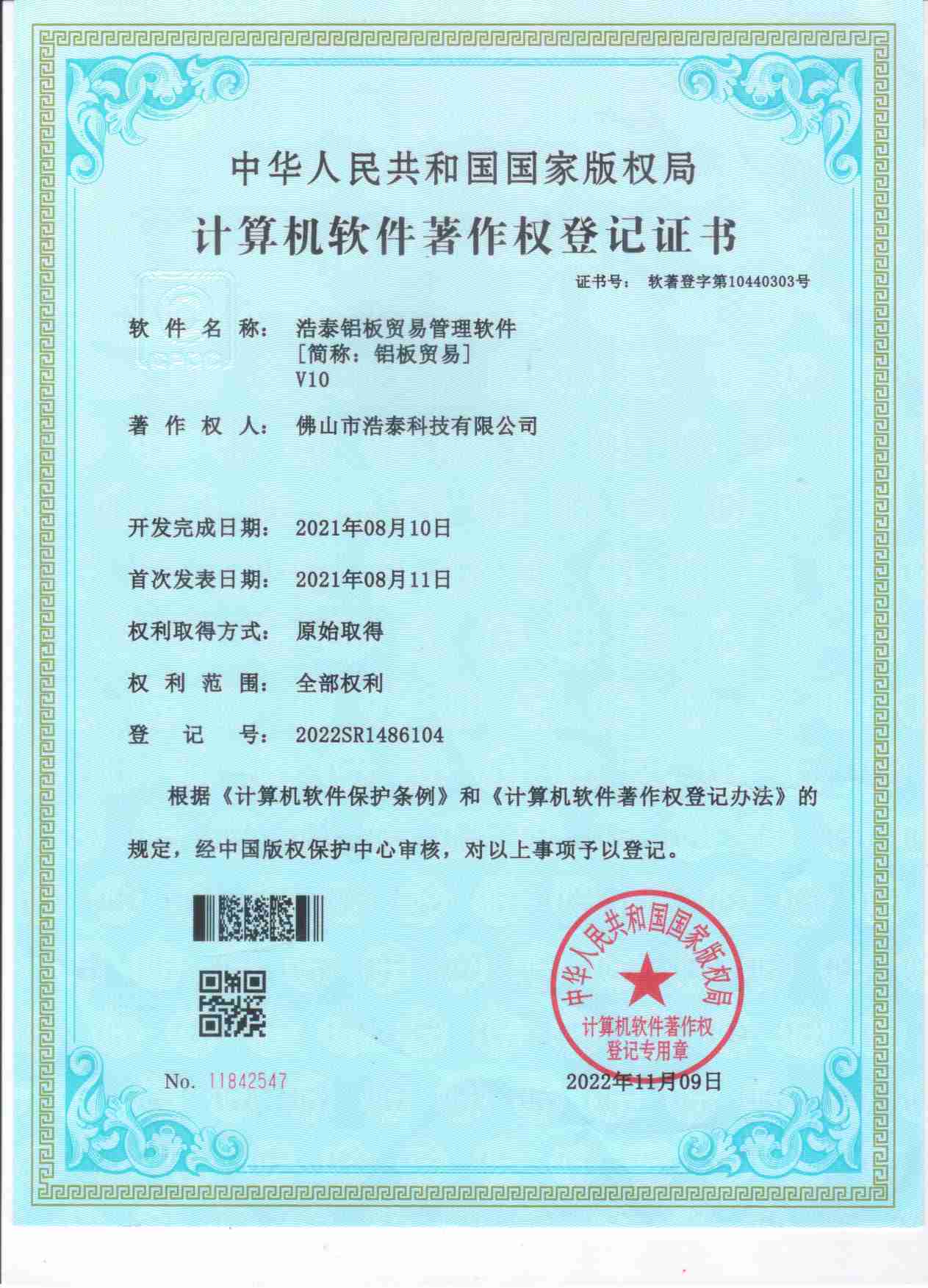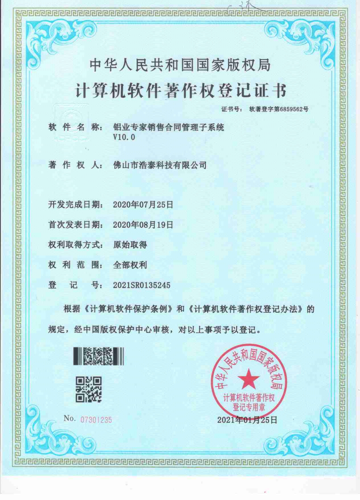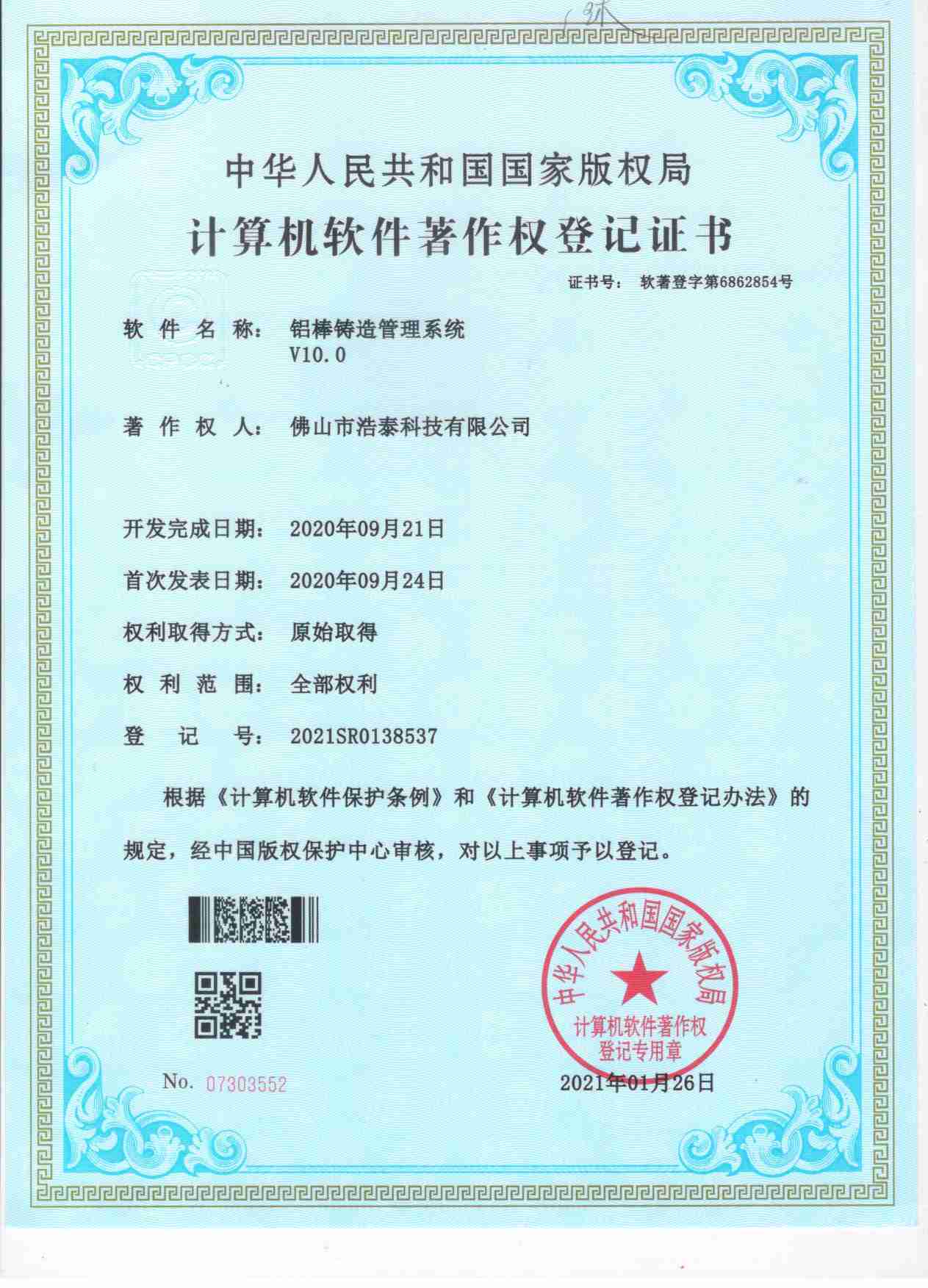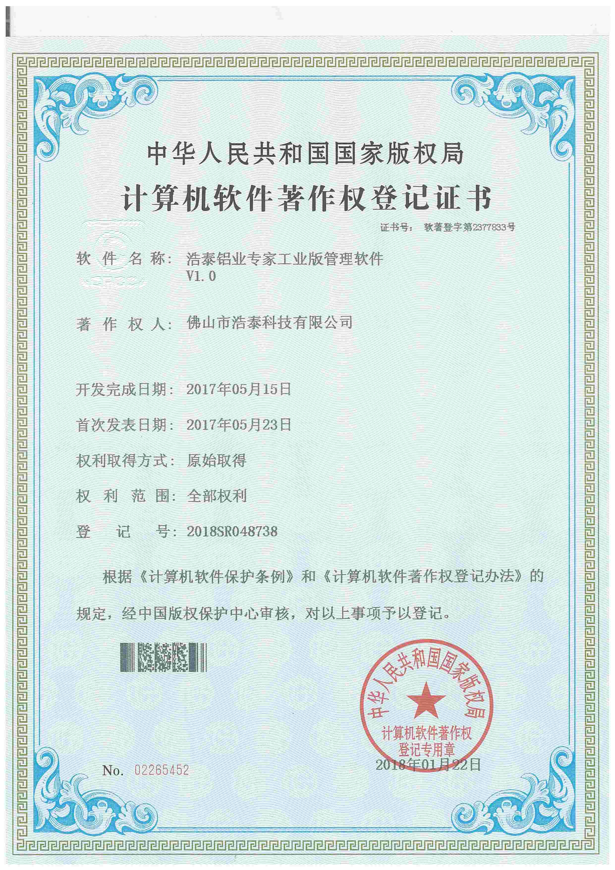 浩泰鋁箔專家系統V1.0,浩泰鋁商家管理軟件V1.0,浩泰鋁模板生產管理系統V1.0,浩泰項目管理系統V1.0,浩泰訂單中心管理軟件V1.0,浩泰鋁業專家工業版管理軟件V1.0,浩泰建材租賃信息系統V1.0,浩泰啟航平臺V2.0,浩泰移動辦公中心軟件V1.0,10個軟件商標注冊成功,鋁業專家云端ERP上線,同時我司取得高新技術企業榮譽!