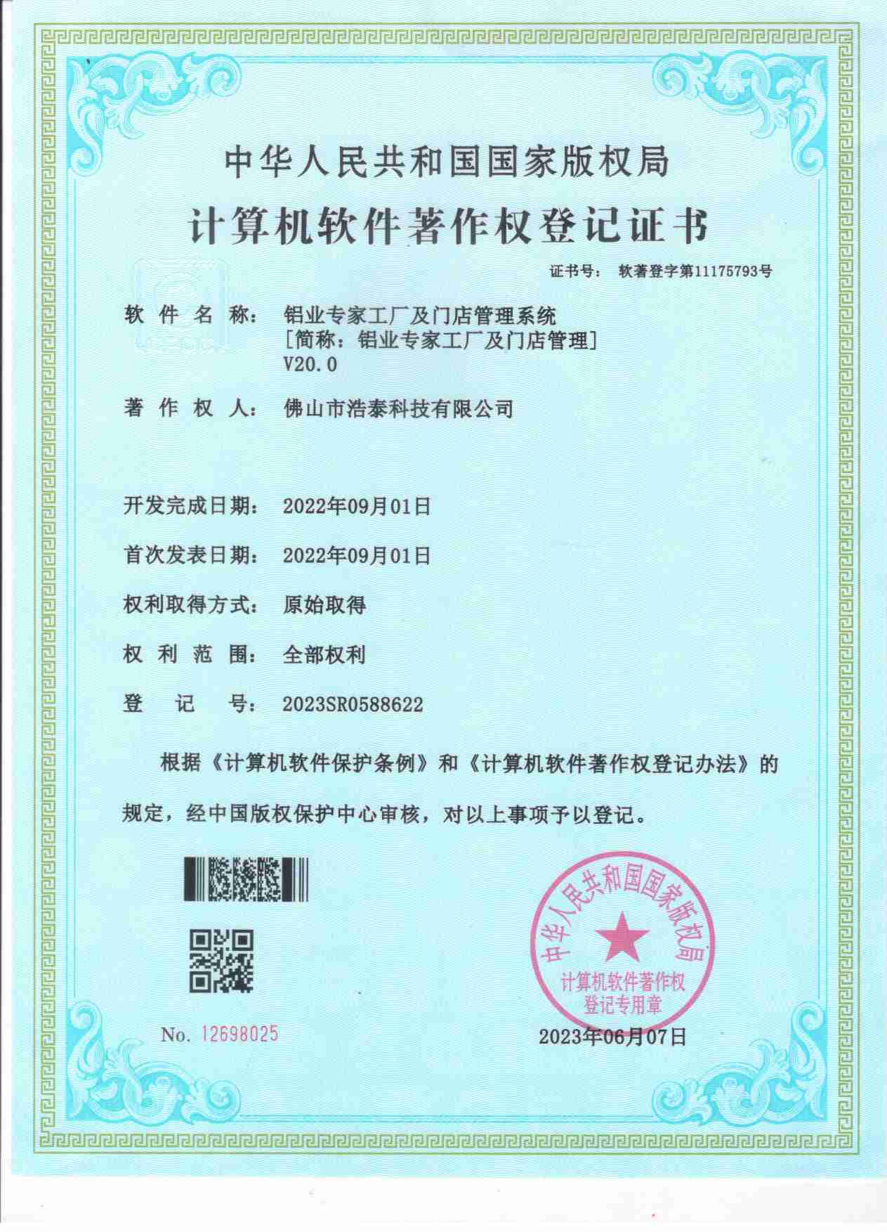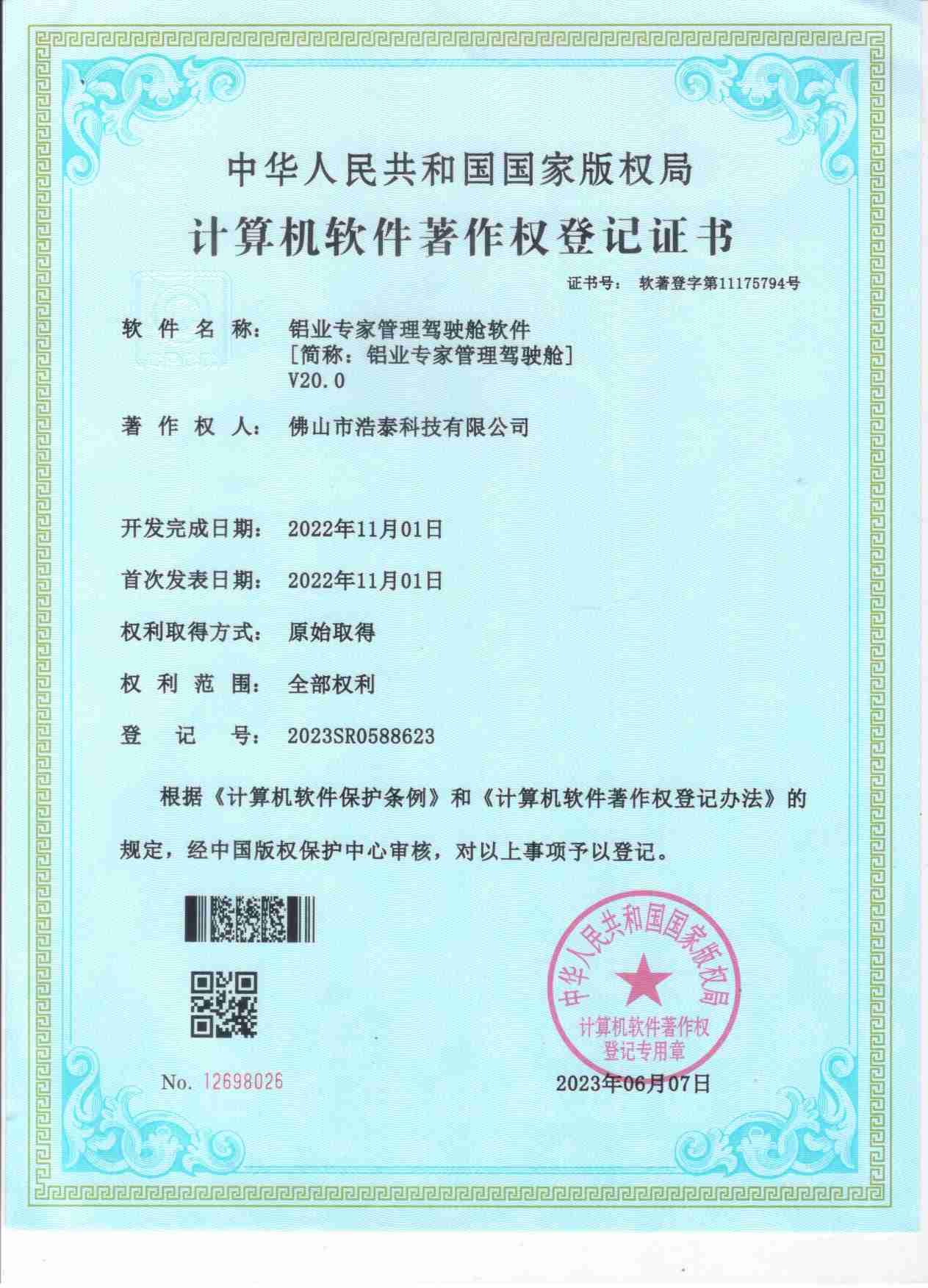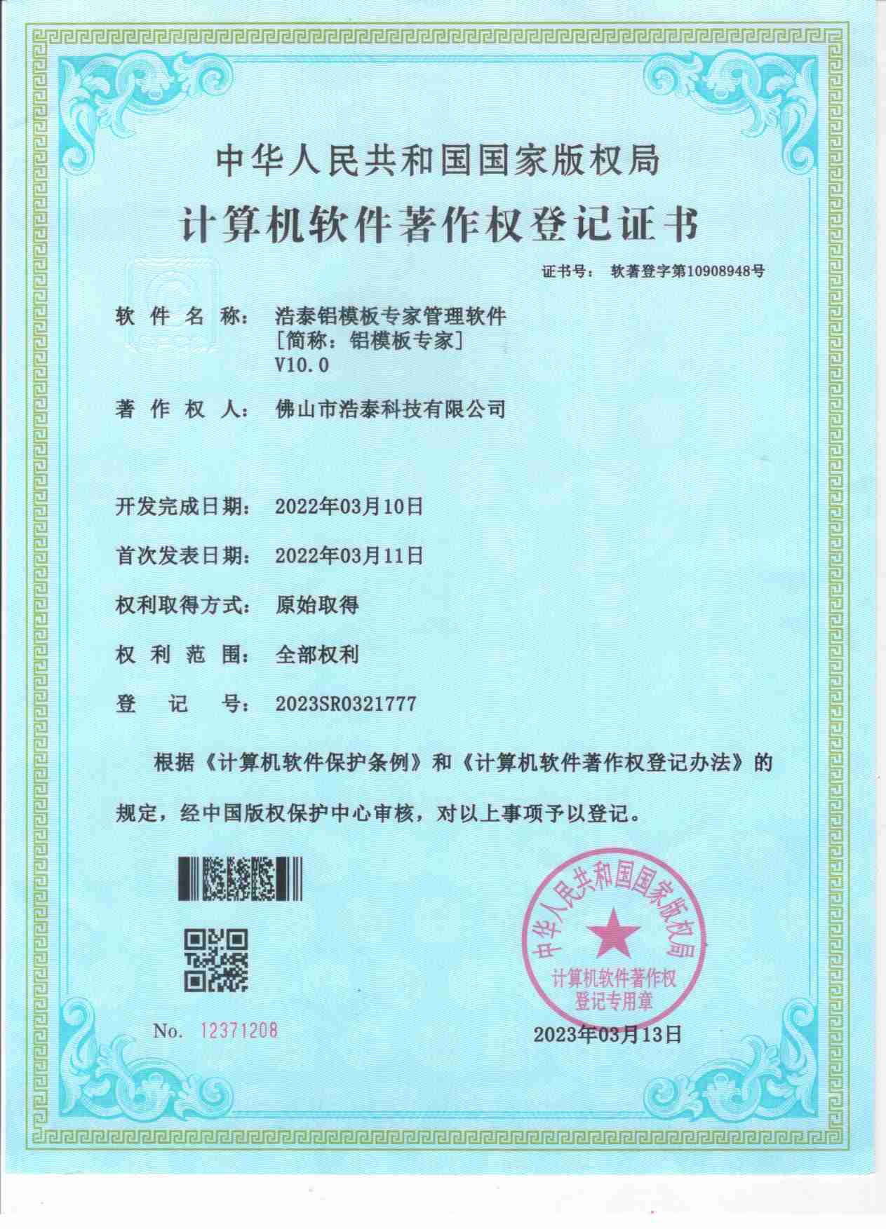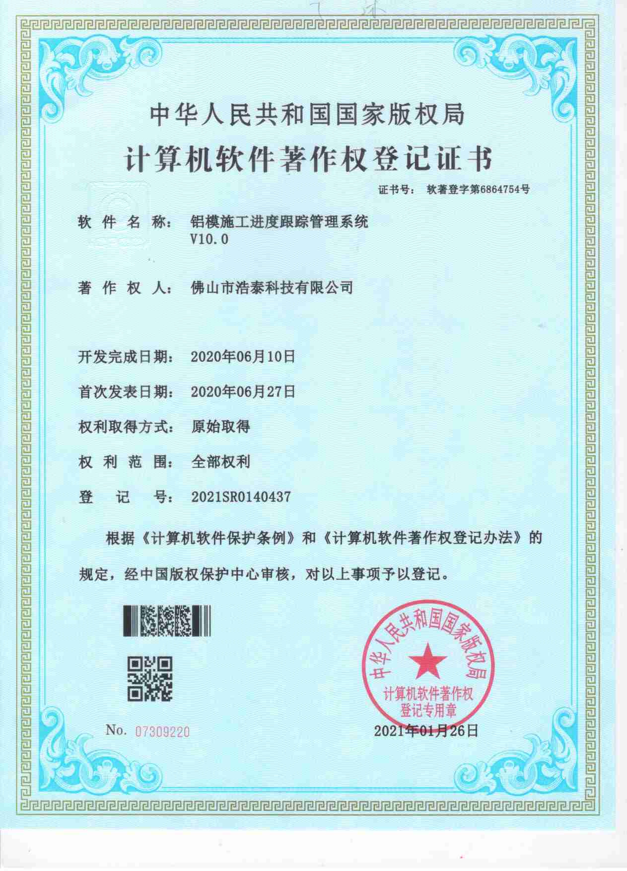 浩泰鋁箔專家系統V1.0,浩泰鋁商家管理軟件V1.0,浩泰鋁模板生產管理系統V1.0,浩泰項目管理系統V1.0,浩泰訂單中心管理軟件V1.0,浩泰鋁業專家工業版管理軟件V1.0,浩泰建材租賃信息系統V1.0,浩泰啟航平臺V2.0,浩泰移動辦公中心軟件V1.0,10個軟件商標注冊成功,鋁業專家云端ERP上線,同時我司取得高新技術企業榮譽!