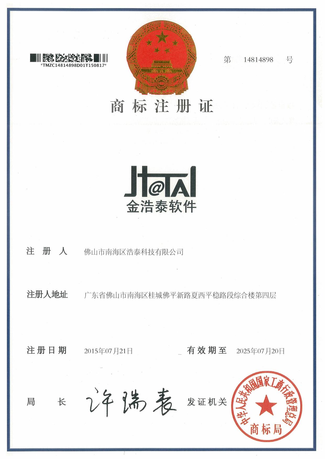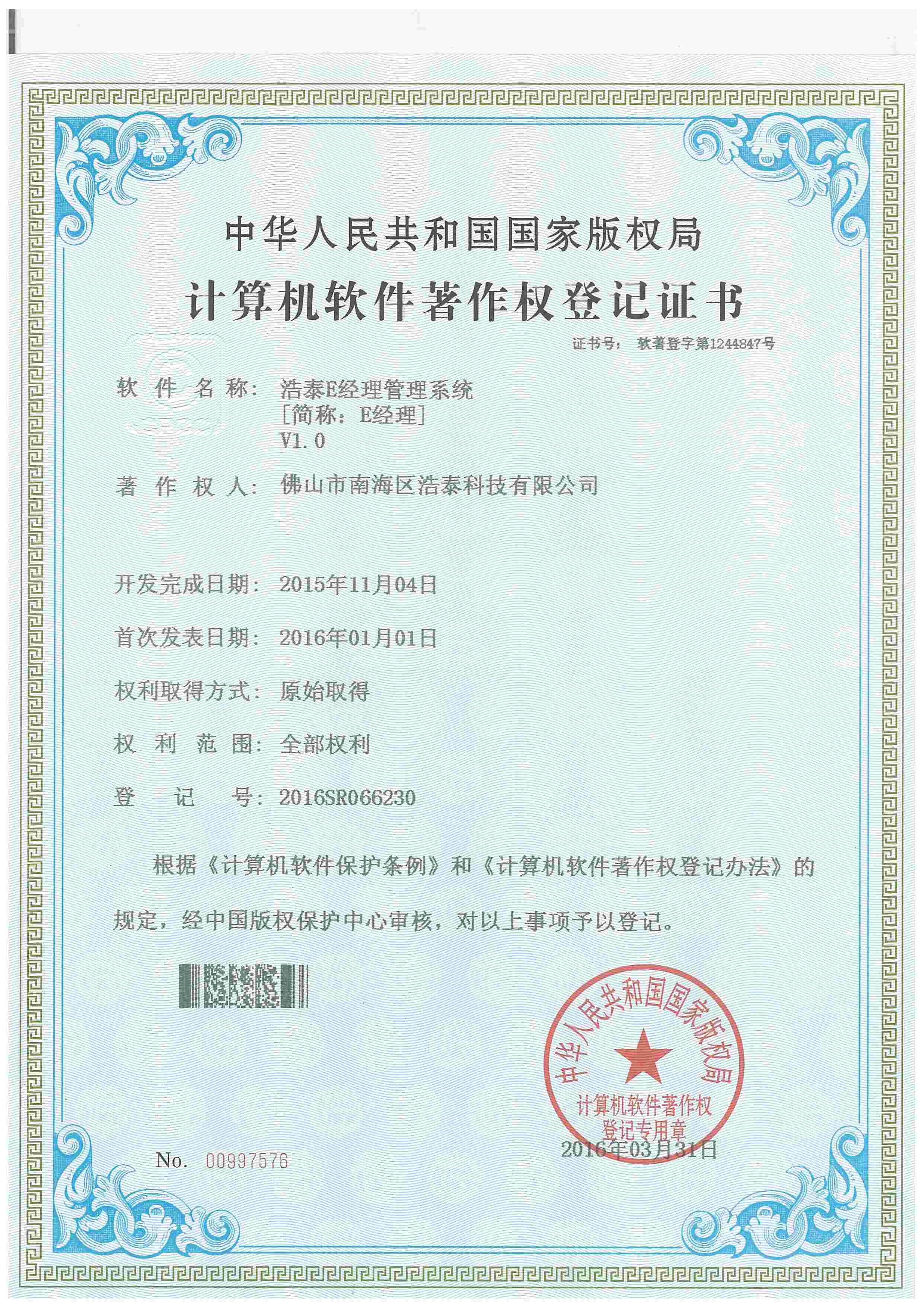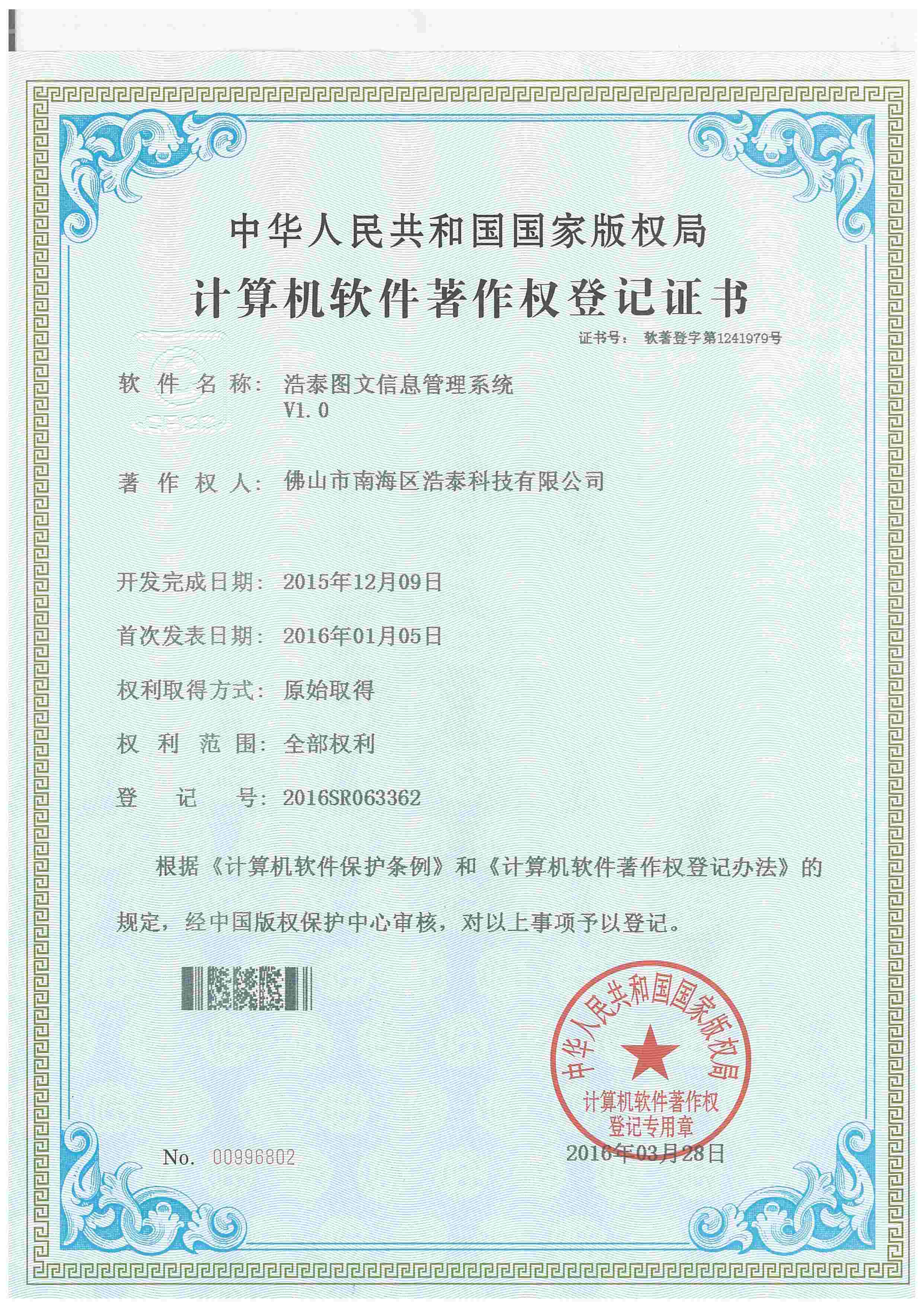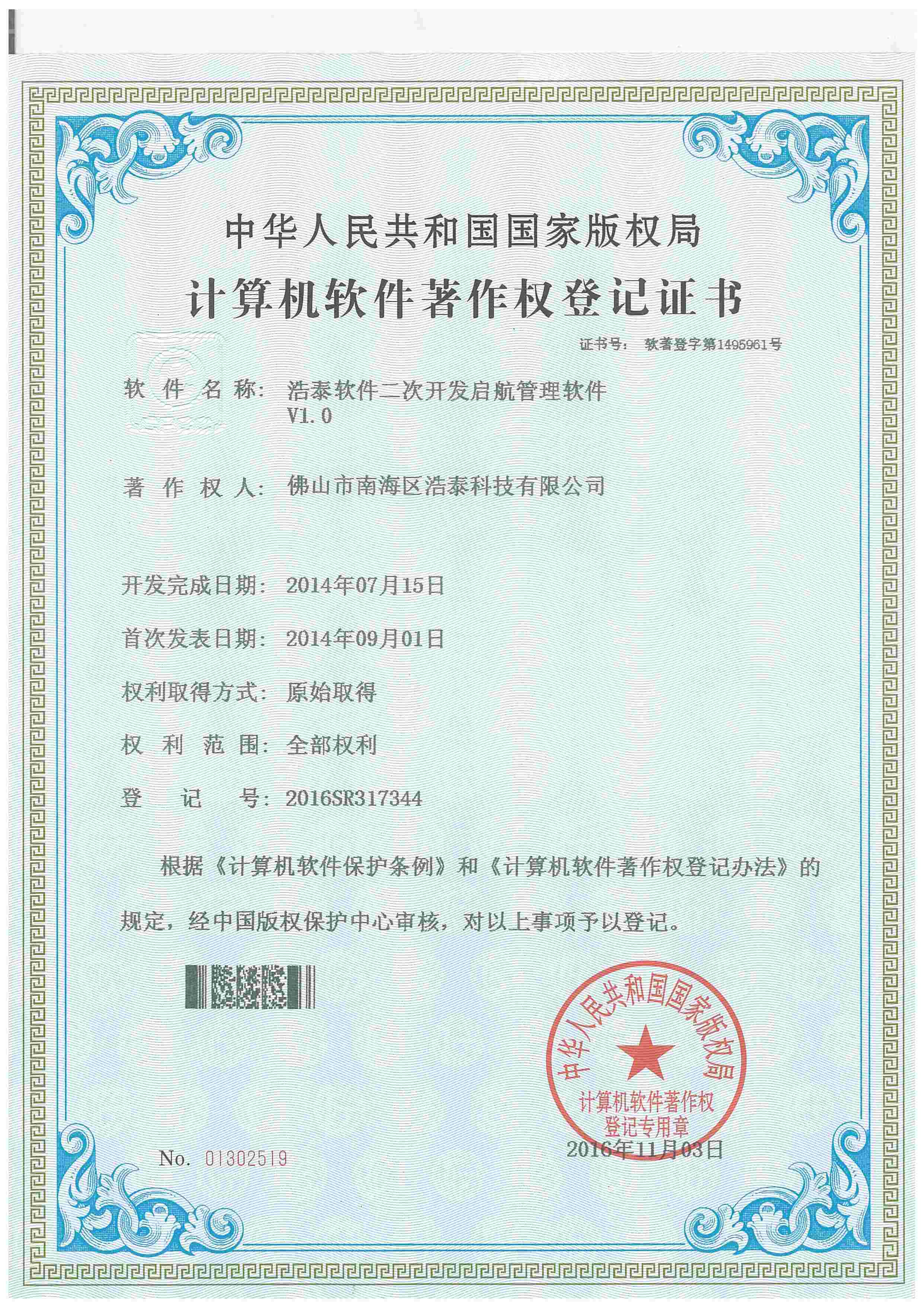 公司喬遷到創越時代文化創意園,更適合IT金融企業聚集辦公的園區,標志公司再上一臺階。 浩泰啟航平臺V1.0,浩泰網上訂單系統V1.0,浩泰企管達人門窗綜合管理系統V1.0,浩泰鋁棒管理系統V1.0,浩泰財務易管理系統V1.0,浩泰圖文信息管理系統V1.0,浩泰E經理管理系統V1.0,浩泰模具專家管理系統V1.0,浩泰鋁業專家管理系統V9.5,浩泰鋁板專家管理系統V1.0 12個商標注冊成功!